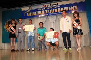 2位以下はクロカジキを24kg(50lb)ラインでタグ&リリースした4チームが225ポイントを上げ、同ポイントで並びましたが、同ポイントの場合、そのポイントを達成した時刻の早いほうを優先するという大会ルールに従って、2位は「GODDESS」(ボート:番匠高宮丸、チームキャプテン:若林克彦さん)、3位「チームアクアビット」(ボート:アクアビット、チームキャプテン:山田一元さん)となりました。