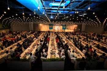 【団体総合優勝・表彰シーン】盛大な表彰パーティー。優勝した「ソールズベリーFC」(チームキャプテン:高柳憲嗣さん)の皆さんは大感激していました。写真提供:(C) 八点鐘 BIGGAME