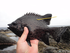 そんな中、20cm台のイシガキダイが2尾、何とか釣れ、この小さいイシガキダイに大いなる期待を込めてタグが打たれ、リリースされました。