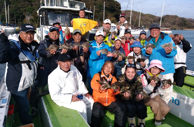 沖釣りもIGFAルールで」という故服部善郎名人(JGFA名誉会員)の呼びかけで始まったJGFA沖釣りサーキット。今年もその「第2戦カワハギ大会」が2018年11月18日、神奈川県小網代・丸十丸で開催され、17人が参加しました この大会では、環境に配慮して、鉄オモリを使用するとともに、資源保全のためにバッグリミットを採用、バッグリミット以上釣れた分や小型はすべてリリースしています。