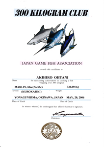昨年7月、「JBTK(ジャパン・ビルフィッシュ・トーナメントin 串本)」で361.2kgの大型クロカジキが釣られ、それが契機になって、300kgオーバーの魚を釣った人が入れる新たなスペシャルクラブ「300kgクラブ」の新設が提案されました。従来、大型魚のスペシャルクラブとして「200kgクラブ」がありましたが当クラブはすでに登録件数が135件(クロカジキ124、シロカジキ9、マンボウ2)を超えており、さらなる大型のクラブが望まれておりました。そこで、JGFAはこのたび、正式に【300kgクラブ】を新設いたしました。