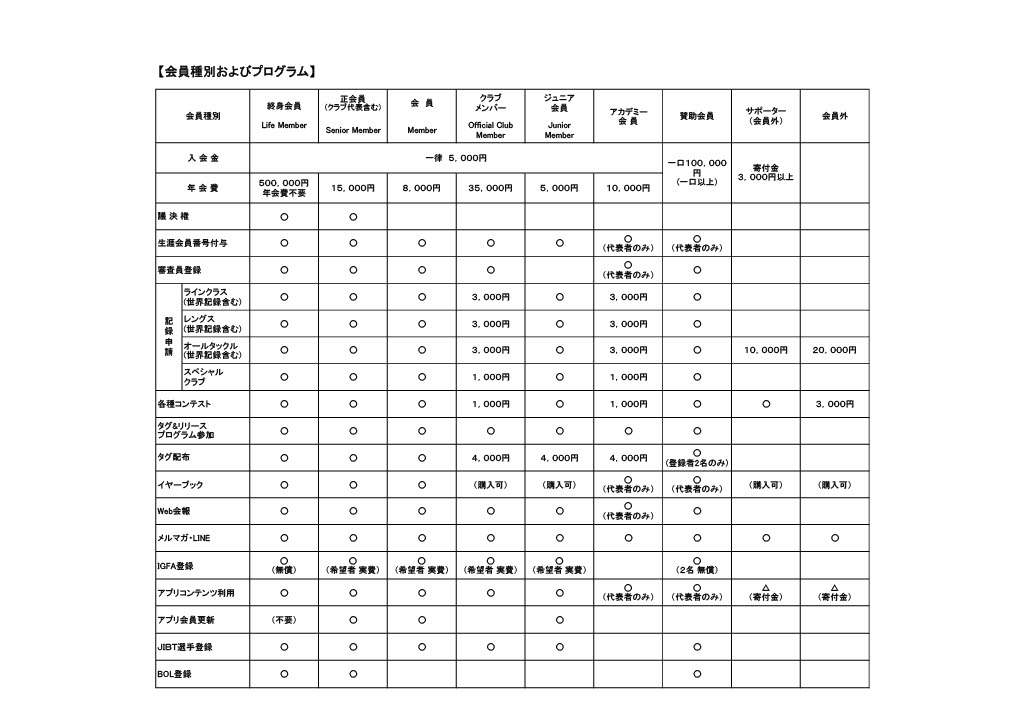 ※2 IGFA登録(本部フロリダ)について:賛助会員、終身会員はIndividual Memberに自動的に登録されます。その他の会員で希望する方は、別途、IGFA年会費(Digital Member:3,000円/Individual Member:5,000円)がかかります。