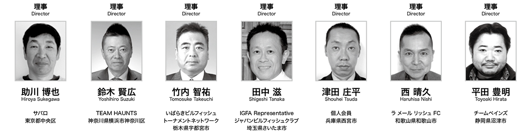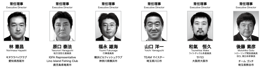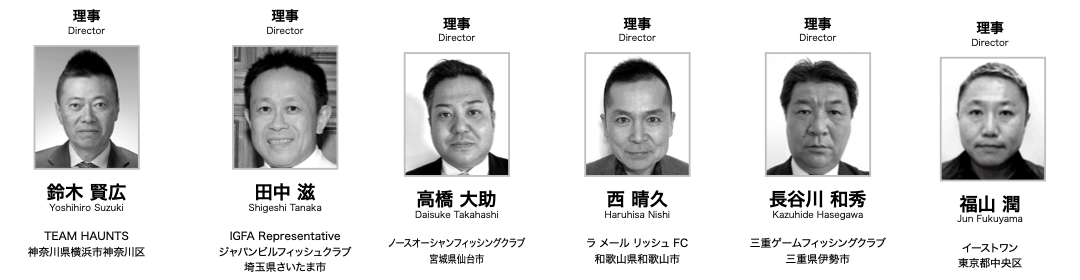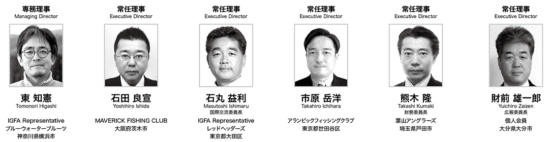 JGFA創立当時からのメンバーであり、1984年、クリスマス島のロウニンアジでIGFAラインクラス部門世界記録を日本人で初めて達成。IGFAとJGFAの存在を初めて大々的に日本に紹介した。JGFAの役割と目的を誰よりも認識し、日本のゲームフィッシュ(釣り対象魚)の資源保全と釣りの将来に向けて積極的に行動する。自身はイシダイ師であり、また、ルアーからカジキのフライフィッシングまで釣りのジャンルを問わずすべてを高いレベルでこなすスーパーなアングラーである。