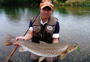 7.30kgのイワナ(アメマス)で記録更新した片岡鉄也さん |