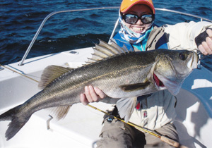 ◎フライで釣った北川真理さんの3.40kgスズキが世界記録▼2013.11/20 フライ/海水/女性/W-8kgティペットクラス