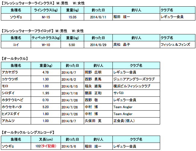 (2010〜2014年・ヒラスズキ10、タイリクスズキ3含む)