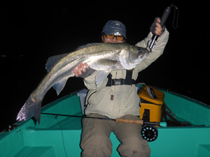 北川真理さんがフライで釣り上げた3.90kgのシーバス。現在、世界記録申請中 |