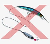 A. とてもまれなことですが、2015年2月、IGFAルールに条文が追加され、ただちに適用が始まりました。「フックのついたルアーは、1度に1つしか使用できない」。つまり写真のような仕掛けは、IGFAルールでは許可されません。フライフィッシングに関しては、毛バリは1本だけ、ドロッパー(枝バリ)は許されないと規定されていますが、今回の動きはその延長線上にあるものです。IGFA ルールの理念とは、アングラーは魚に対して最大限にフェアな姿勢を保つ、ということになるでしょう。