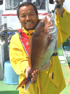 見事に2.46㎏のきれいなマダイをあげ、優勝した兵頭実さん