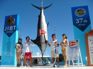 第37回JIBTは、台風11号の影響で南西風が吹き荒れ、初日、2日目はやむなく中止。当初エントリーは95チームありましたが、82チームでの開催に。3日目の20日は南西風も少し収まり、わずか1日の大会となりました。その結果、唯一2尾のクロカジキをともに50ポンドラインでタグ&リリースしたMahaloが合計390ポイントを上げ、チーム優勝を勝ち取りました。なお、チーム2位はFANTASIA、3位はBlue Water となりました。この大会では4本の人工衛星追跡型タグがカジキに装着されました。