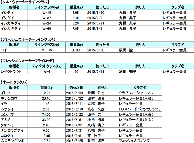 ▽出 船 8:00 納竿14:00 表彰式15:00