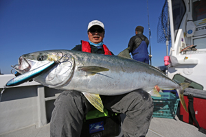徳永兼三さんとヒラマサ叉長133cm(全長146cm) |