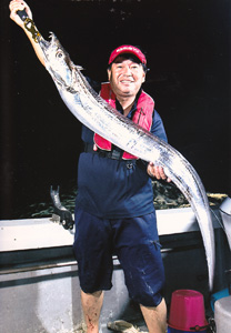 日釣振神奈川県支部長でもあり、テレビ番組「釣りたいっ!」のホスト役としてもご活躍されている山口充さんが鹿児島県まで追いかけ、ついにタチウオ2.75kg(全長144.5cm)の大物をキャッチされました。この魚で2016年度日本記録MVPを獲得。この日は2kg超えが3尾釣れたそうです。胴回りは驚異の30cmオーバー!世界記録も間近ですね!