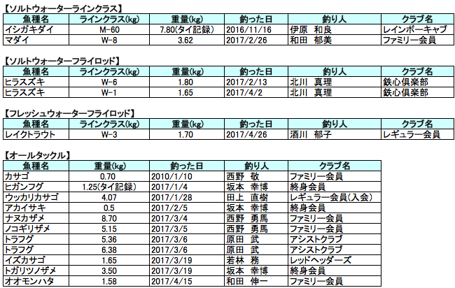 朝一のゴールデンタイムは全員空振りで掛かるのは大アジ、ホウボウなど。ところが、潮止まり前あたりから待望の当たりが出始め船中4尾。三枝孝一郎さん(マーメイドAC)がこの日最大の 1.70kgをゲットし優勝しました。