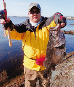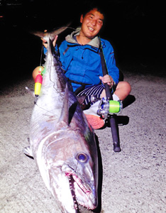1.15kg(59cm)のグッドサイズのマゴチで優勝した川添法臣さん |