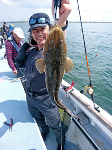 JGFA沖釣りサーキット2019 第1戦「マゴチ大会」が5月19日、深川・吉野屋で開催され、20人が参加しました。釣り場となった千葉県側の大貫観音下は、大物が潜む東京湾きっての好ポイントです。渋い出だしを割ったのは開始1時間後。左舷ミヨシ寄りで生きエビえさでトライしていた川添法臣さん(レギュラー会員)が手にした船中1号は1.15kg(59cm)の大型。ここで船内が一気に活気づきました。次いでルアーでチャレンジしていた森田一裕さん(サバロ)が大、中型を連続ヒット。しかし、当たりはポツポツ出るものの、早合わせ禁物の対象魚。スッポ抜けや合わせ損ないも…。残念ながらオデコも出ましたが、2人が2尾釣りました。〝照りゴチ〟はこれから迎える盛夏が本番です。