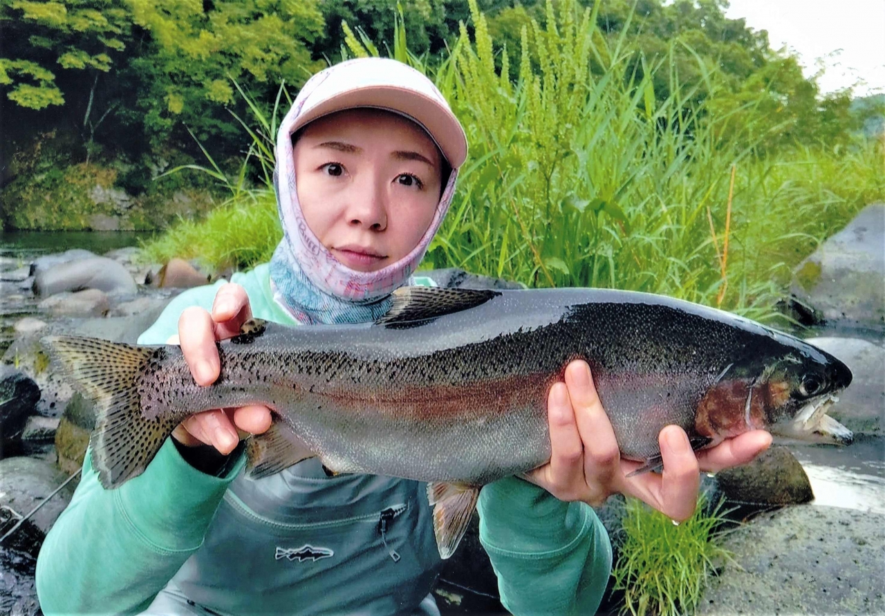 ニジマス1.30kgを釣りあげた中井遥子さん
