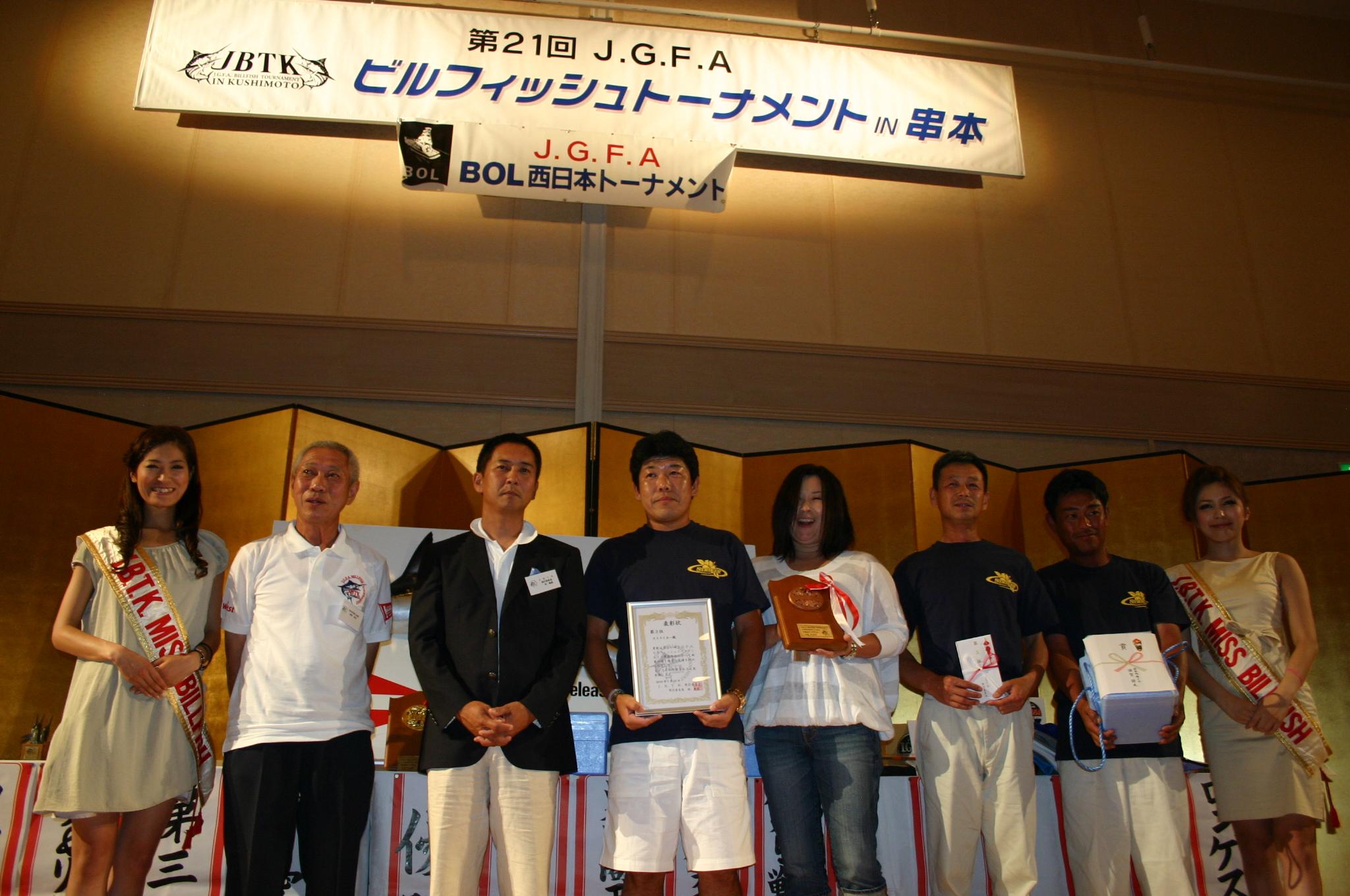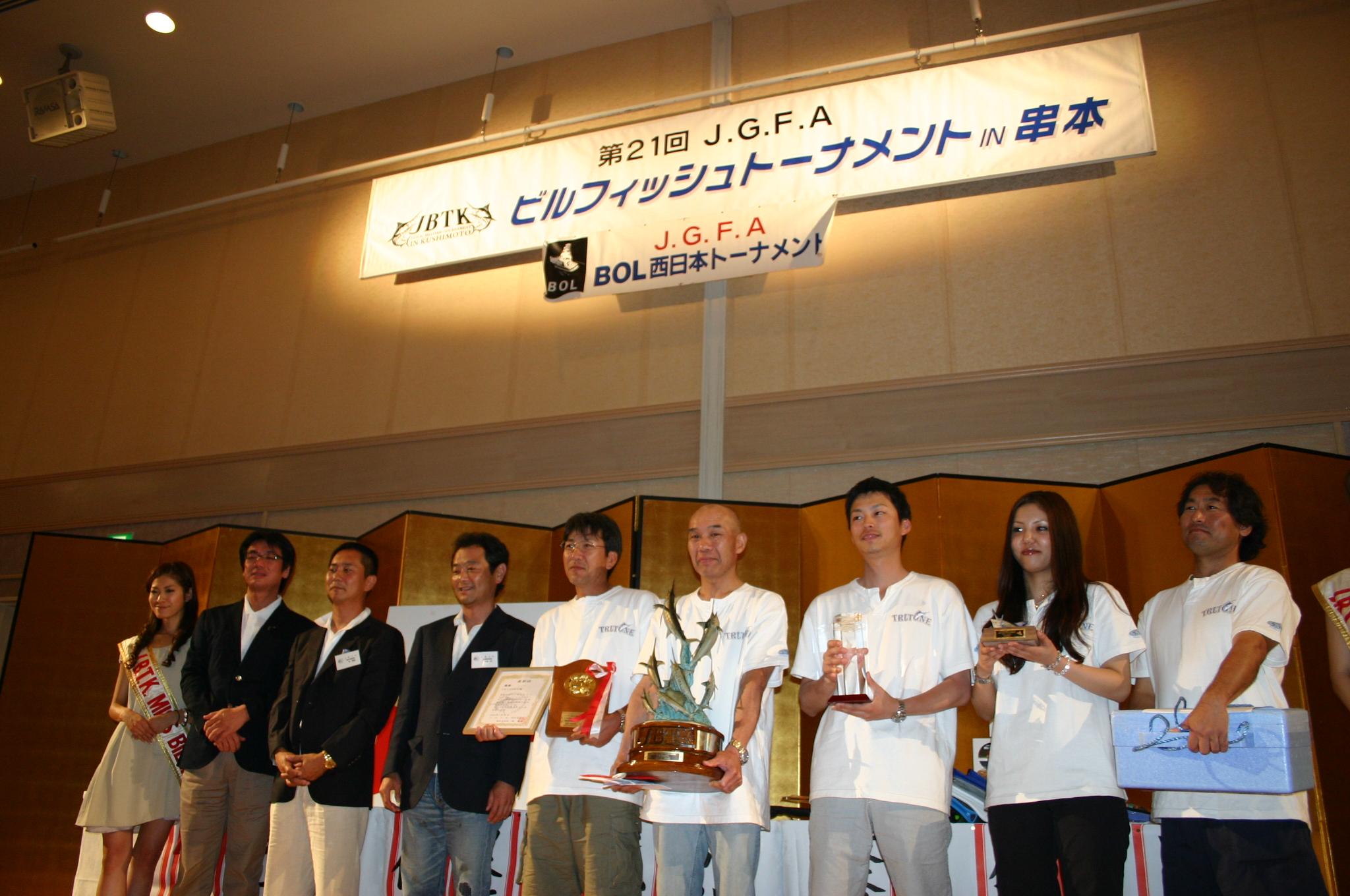 昨日よりもヒットポイントは少し東に移動し、136度付近でヒットが集中。そんな中トリトーネがカジキをストライクこれを50lbラインにて無事 T&Rし、最終日のファーストマリンを飾る。そのわずか13分後再びトリトーネにストライク。2本目も無事T&R完了させ一気にトップに 躍り出る。その後小康状態が続き、ストップフィッシング間近の13:20分 スリムジムがカジキをストライクさせ無事にランディング。