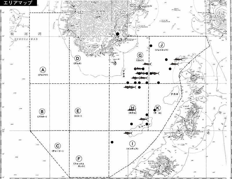 ※下図カジキマークはタグ&リリースもしくはキャッチ、■はバラシもしくはストライクのあったポジション