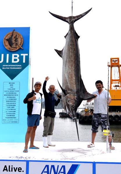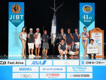 このように第41回JIBTはマハロの優勝で幕を閉じましたが、たいへん残念だったのはストップフィッシング8分前の14:52にカジキをヒットさせたデジタル魚拓DGS(チャーターボート:若宮丸)でした。このカジキがことのほか大きく、検量締め切り時刻の17:00になってもファイトが続き、惜しくもタイムオーバー。ランディングしたのはなんと229.45kgもある今大会唯一のシロカジキでした。