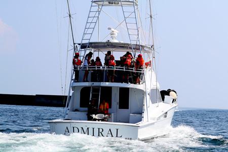 【体験クルージング】毎年、地元の小学生を招待してかじきミュージアムを見学してもらったあと、体験クルージングを行っています