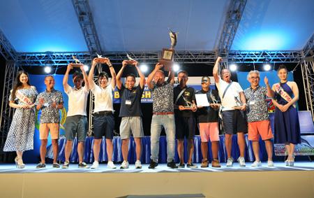 【団体総合優勝・農林水産大臣賞】1日目に4尾のクロカジキを釣り、そのまま逃げ切ったチームマハロ。2015年、2017年に続き3回目の優勝です。すごいです