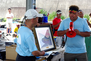 好釣果はそのまま笑顔に反映され、競技終了後に会場で行われたチャリティーオークションも大いに盛り上がり、各参加者たちから寄せられた落札代金と募金の合計はJGFAを通して被災地復興の義援金として募金させていただきました。