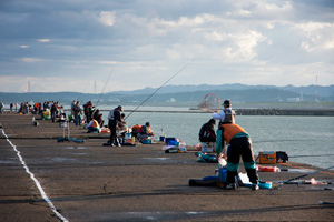 大会は、沖釣り部門と陸釣り部門がそれぞれ行われました。昨年の第1回大会の陸釣りでは、柏崎沿岸42キロで各自釣り場を選定しての競技でしたが、今回は新潟県と柏崎市、柏崎観光協会、柏崎釣遊紳士会が協議を重ね、安全管理の下、柏崎港西防波堤の一日限定部分開放(ゲートより400m・内海側)が実現しました。