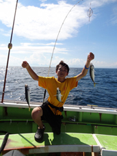 二日目、シイラとアジ釣りをしました。シイラはメーターオーバーもあがりました!!
