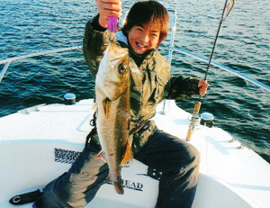 【ルアー・関東&中部・ジュニア2位】2位は藤原寛人くん。東京湾の京浜運河でボート・キャスティングで釣った叉長58cm。