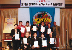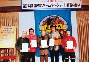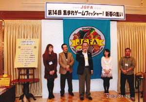 創立35周年を迎えたJGFA(長鋪毅一郎会長)の新春イベント、「第14回集まれゲームフィッシャー!新春の集いin東京」が1/26(土)、JR山手線大塚駅前「ホテルベルクラシック東京」で開催されました。食べ・飲み放題、福引大会あり。プチブースやアピールタイムも楽しめる--そんな恒例のJGFA新春パーティー。2012年は震災のためお休みしましたが、今年のJGFA新春パーティーには全国各地から120人ものゲームフィッシャーが大集合、わいわいと釣りの話で盛り上がりました。