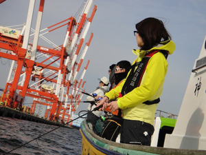 6時過ぎにミーティング。主催者の丸橋英三サバロ会長(JGFA副会長)の挨拶に続き、猶原実行委員長(同理事・釣魚保全委員長)からルール説明(オールリリース、T&R、バーブレスフック、競技時間など)があり、6時10分にポンツーンから順次乗船開始。参加する23艇は市営10号上屋の沖に集合し、6時30分、本部船のクラクションの合図とともにスタート・フィッシング!安全に配慮して小型艇を先に走らせます。予報どおり風は強まるものの、横浜港から京浜運河周辺は風裏の静かなポイントも多く、ボートキャプテンの戦略が頼りになります。