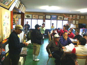 検量対象サイズは釣れず、冬の嵐のような天候でしたが、懇親パーティーは和やかに・・・。