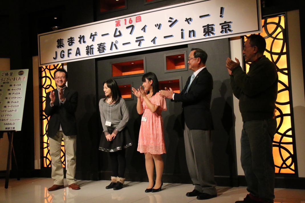 JGFAの恒例イベント、「集まれゲームフィッシャー!新春の集い in東京」が1/24(土)、JR大塚駅前「ホテルベルクラシック東京」で開催されました。うれしい食べ/飲み放題、プチブースでの展示も楽しめるというこの機会に、全国各地から120人ものゲームフィッシャーが集合。パーティーでは丸橋副会長のあいさつに続き、来賓代表としてJGFA賛助会員のマルキユー・宮澤政信社長からお言葉を頂きました。日本釣振興会専務理事の清宮栄一様からは、乾杯のご発声を頂戴しました。