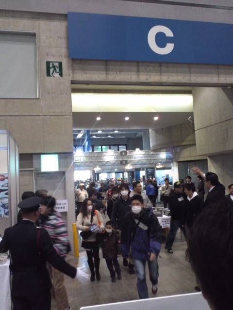 14年の新製品をイの一番で見ようと会場へ駆け込む大勢のファン。今年のJGFAブースは入り口のすぐそばでした