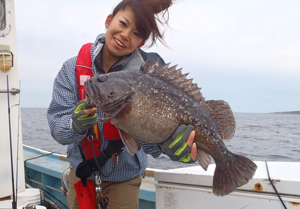 阿部碧さんが船から釣ったクロソイ3.15kg。船釣り/女性部門に申請しました。阿部さんは堤防から釣ったクロソイ0.90kgも岸(磯)釣り/女性部門に申請しました。