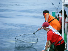翌朝は昨日とはうって変わって朝日が顔を出し、風も無く穏やかな海で、期待のできる大会2日目が始まった。2日目は明るい笑顔が印象的な釣りドル本間愛花さんが参加し、ベテランの猛者達からもしばし笑顔がこぼれた。出船前よしゆき丸船長と話し、「今日はデカイのいこう。デカいの。」と船長も参加者からも皆のやる気が船中に伝わる。