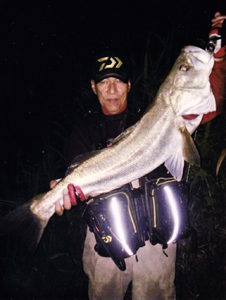 (10) 【ルアー・北陸&山陰・男性2位】鳥取県の入江則夫さんは同県の勝部川で叉長77㎝を釣り2位に入りました。(参考:全長89cm)