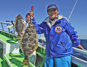 船長の計らいで、1時間延長して、午後1時までポイント移動や流し替えをして、どうにかほとんどの人が、本命ヒラメの釣果を得ました。