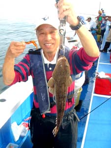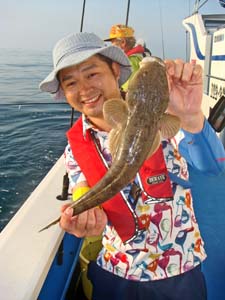 (3)テンヤで狙うマゴチは初挑戦の諸喜田智さん。開始30分で早くも4尾マーク