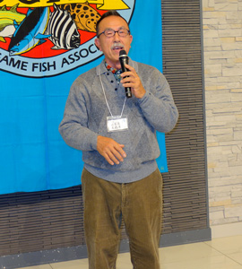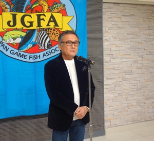 (公財)日本釣振興会・副会長であり、JGFA名誉会員の常見英彦様より、おじい様の常見保彦様のIGFA殿堂入りセレモニーに列席された際のご報告とお礼を兼ねたごあいさつを頂戴いたしました。
