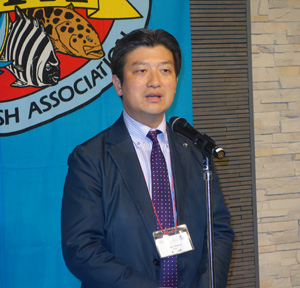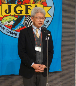ご来賓を代表してJGFA賛助会員・マルキユー(株)の中村剛取締役よりご挨拶をいただきました。