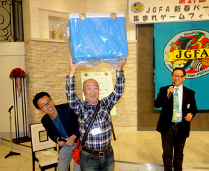続いてJGFAアンバサダーの紹介、昨年の日本記録達成者、タグ&リリース活動の功労者、沖釣りサーキット入賞者の表彰が行なわれました。お楽しみの福引抽選会も大いに盛り上がり、2時間がとても早く感じられたパーティーでした。
