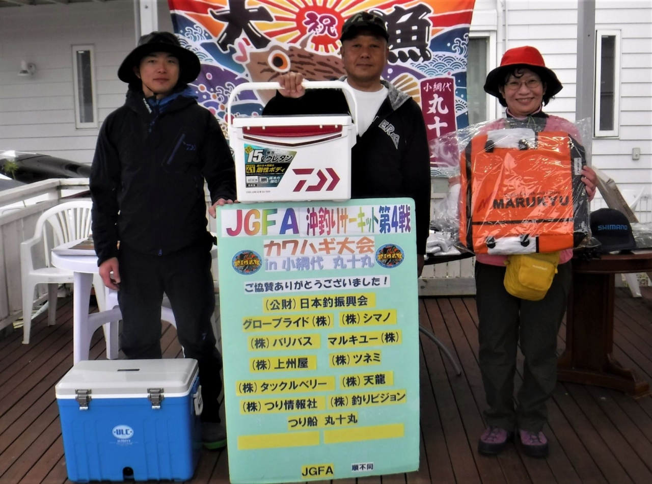 (2)前回の2019年大会ではお嬢さんが優勝。今回はご自身が優勝と古宮家がカワハギ大会2連覇を達成! 古宮正勝さんです。3尾そろえて698gでした。