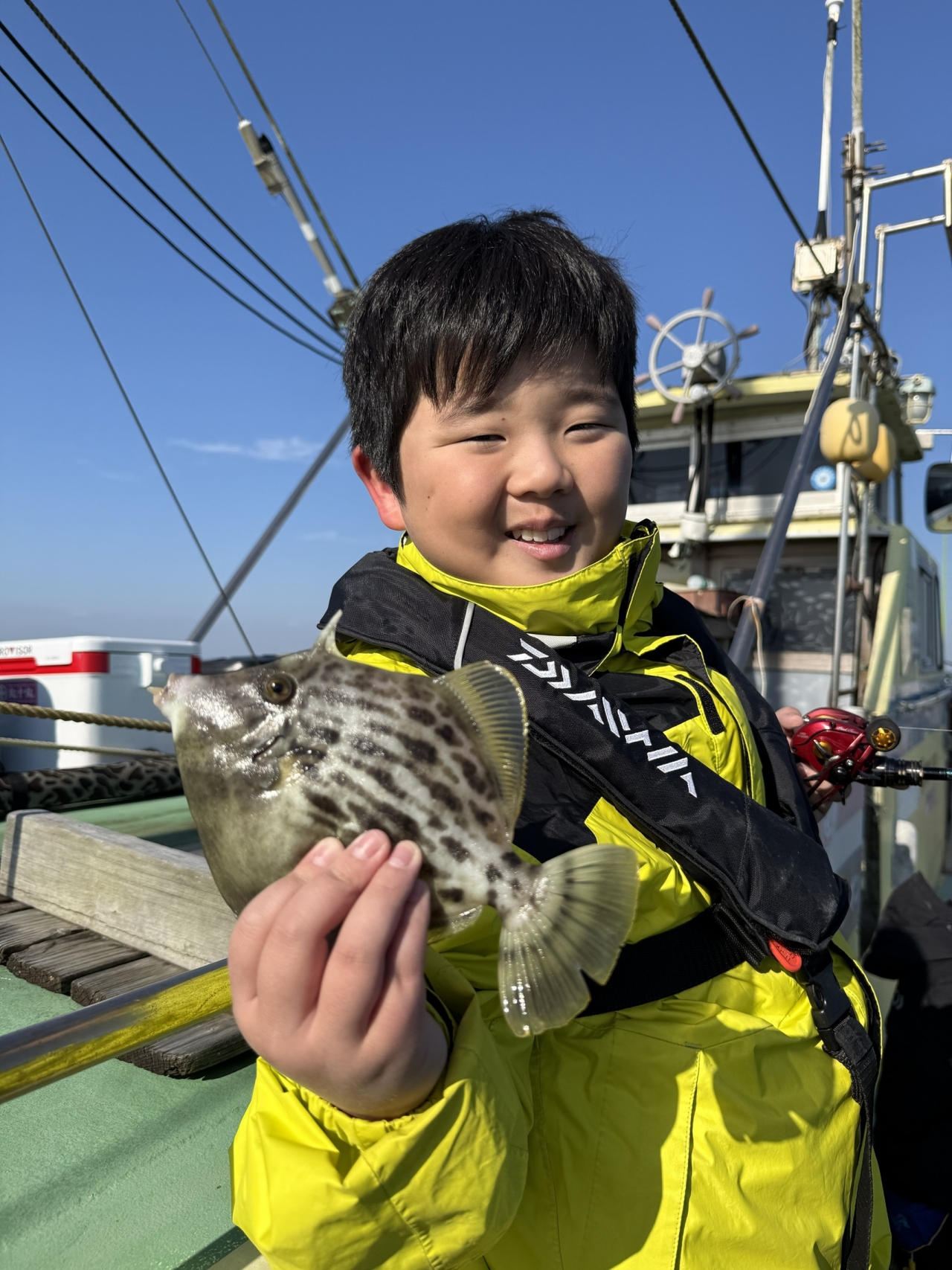 晴天に恵まれた大会当日。小網代沖で釣りをスタートしたものの、最初の頃は魚の反応は少ない状況でした。カワハギ釣りのゲストとしてよく釣れるトラギスやササノハベラも少なめで、「生体反応がないね~」と「丸十丸」船長の小菅裕二さんも苦笑い。