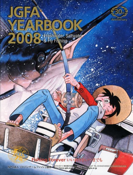 矢口高雄先生にお願いしてJGFAイヤーブック30周年記念号(2008年版)の表紙を描いていただきました。私たち釣り人に三平を通して本当にたくさんの夢を与えていただきました。心から御礼申し上げます。ありがとうございました。