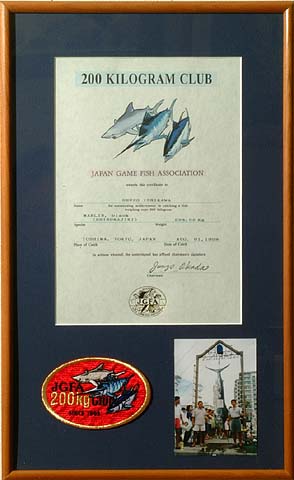 200kgクラブの認定証です。200kgオーバーの記録魚は