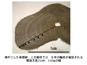 背鰭の最長棘を輪切りにした時に観察される年輪