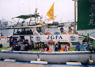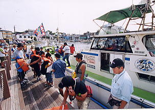 岸壁を離れてすぐの城ヶ島大橋付近で大き