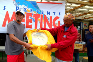 | 1位の賞品として、平山不二先生作のシイラ大皿が授与されました。 |